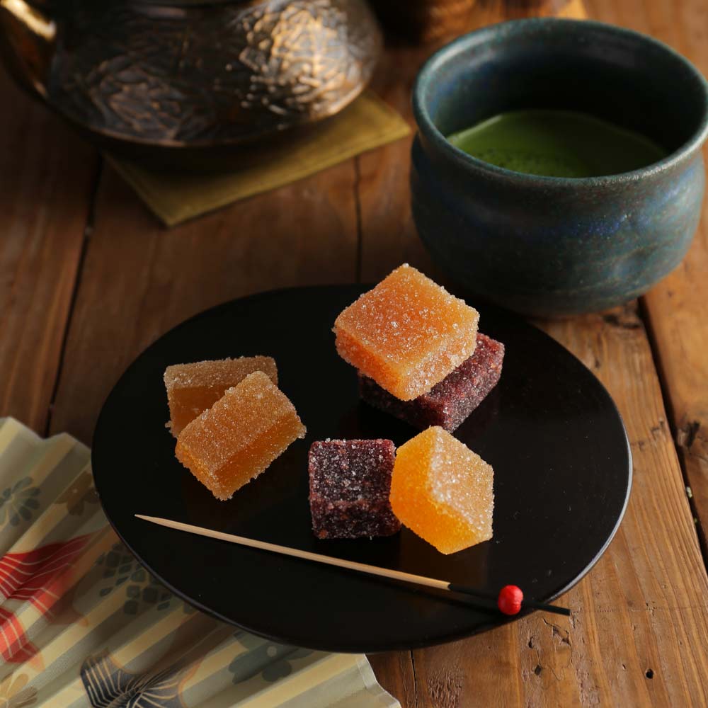 ヨーロッパでは「お菓子の宝石」とも称され、フランスでは10世紀からの伝統菓子としても有名なパート・ドゥ・フリュイ。フルーツを贅沢に使用しており、1粒を丸ごと贅沢に味わうだけでなく、1/4や1/8などお好きなサイズにカットして、ワインやシャンパンなどのおつまみにしたり、スライスしたチーズに乗せてカナッペにしたり、食後のヨーグルトやアイスクリームの上にパラパラとトッピングしてもお楽しみいただける新感覚のマリアージュスイーツです。