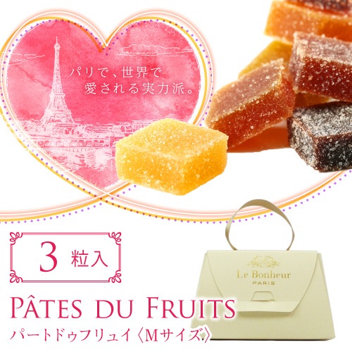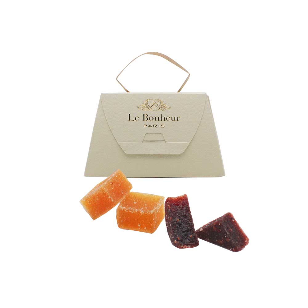 ヨーロッパでは「お菓子の宝石」とも称され、フランスでは10世紀からの伝統菓子としても有名なパート・ドゥ・フリュイ。フルーツを贅沢に使用しており、1粒を丸ごと贅沢に味わうだけでなく、1/4や1/8などお好きなサイズにカットして、ワインやシャンパンなどのおつまみにしたり、スライスしたチーズに乗せてカナッペにしたり、食後のヨーグルトやアイスクリームの上にパラパラとトッピングしてもお楽しみいただける新感覚のマリアージュスイーツです。