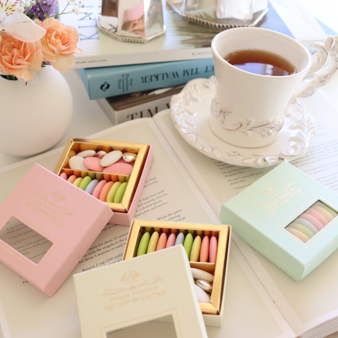 小窓からのぞくパステルカラーのドラジェは見た目にも華やかで、贈る方の笑顔も目に浮かびそう。ご自分用としてはもちろんのこと、大切な方への手土産やパーティー用のプレゼントとしてもぴったり。