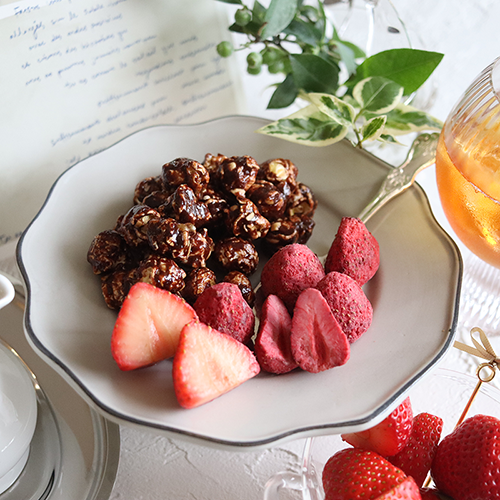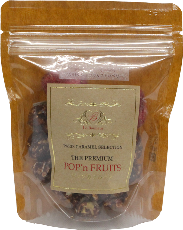 人気の「ショコラポップコーン」と「含浸ストロベリー」を組み合わせたポップ&フルーツ