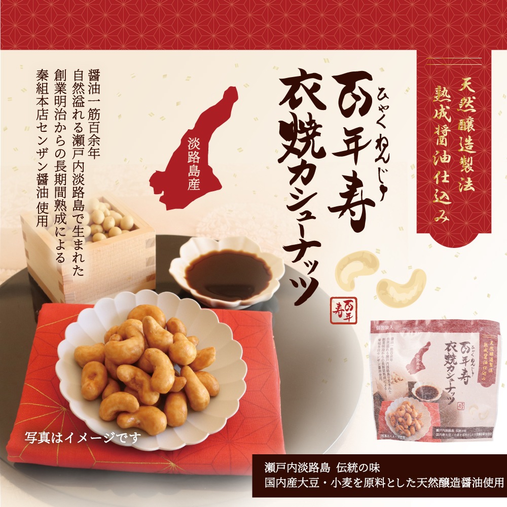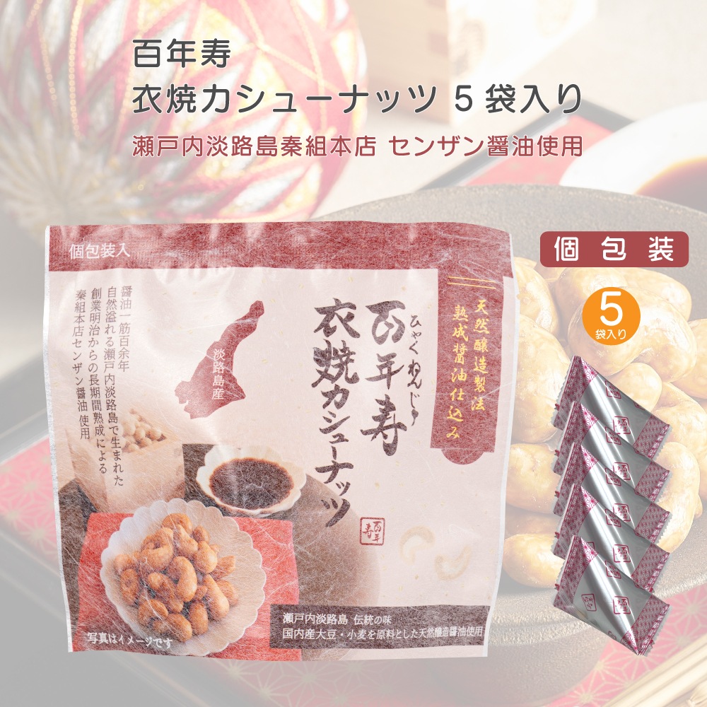 百年寿 衣焼カシューナッツ 5袋入り 瀬戸内淡路島 秦組本店センザン醤油使用