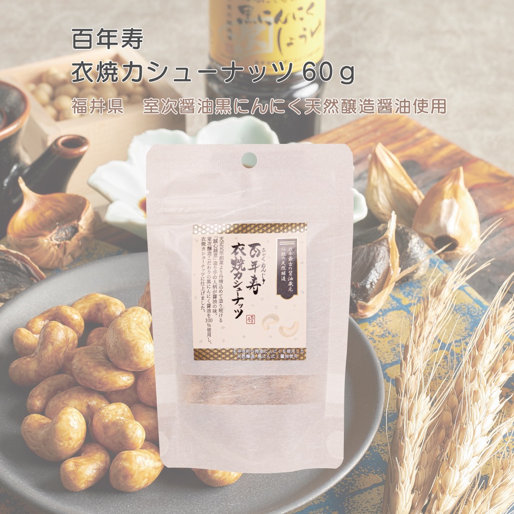 百年寿 衣焼カシューナッツ 60g 福井県 室次醤油黒にんにく天然醸造醤油使用